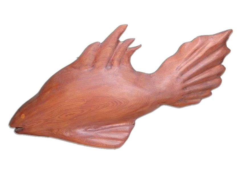 Bob works in a variety of mediums including stone, wood and metal. Fish are a frequent theme, his largest being a copper fish fountain.